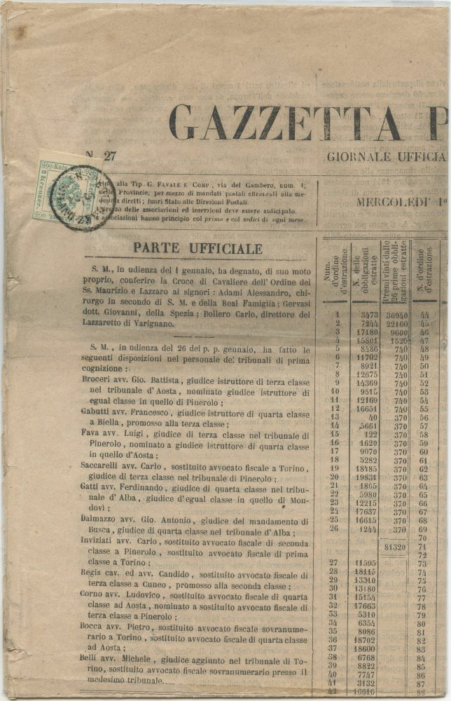 1861 - III, IV, V e VI emissione + marche da bollo usate per posta e per giornali, interessante insieme composto da 14 oggetti postali e da numerosi sciolti nuovi ed usati.