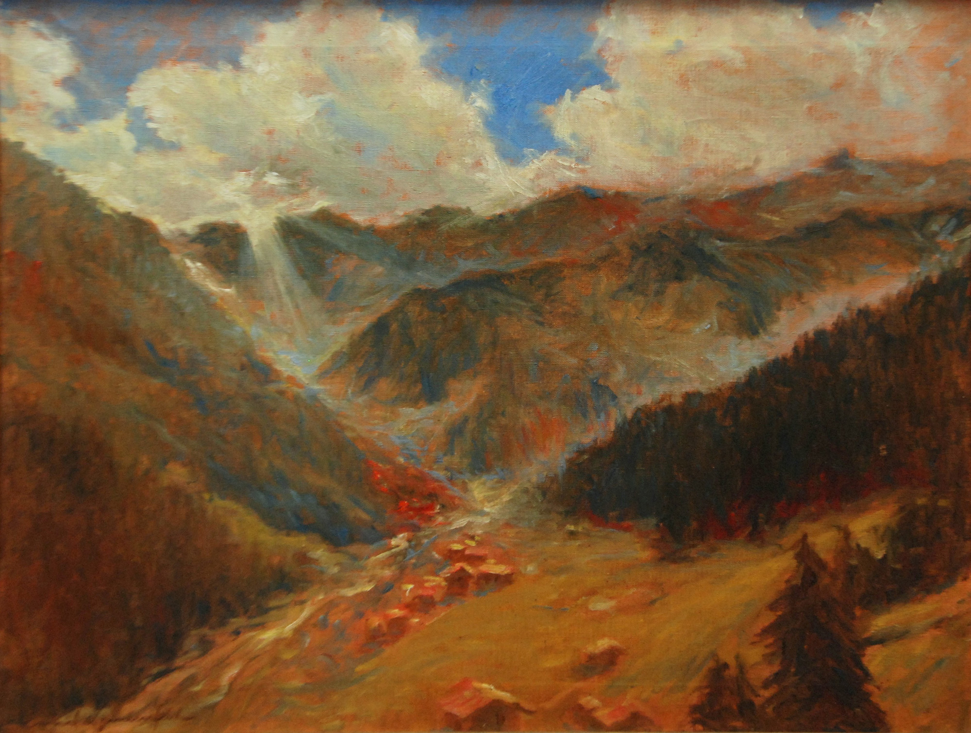Emil Lindenfeld 1905/1986 olio su tela raff.paesaggio montano firmato in basso a sinistra