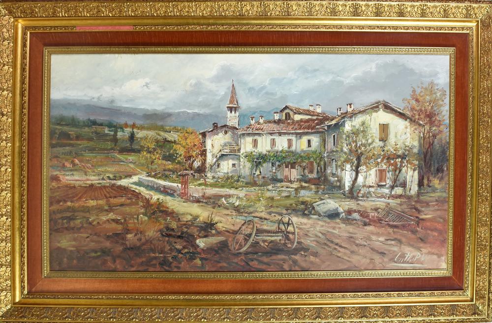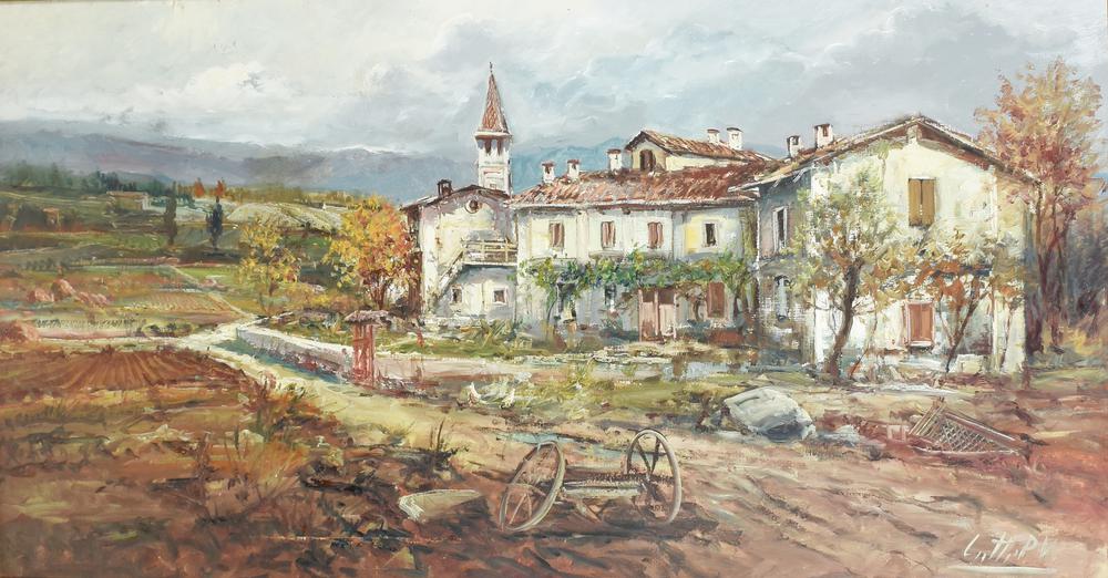 Pietro Virgilio Lietti PAESAGGIO CON CASCINA olio su tela, cm 60x120 firma...