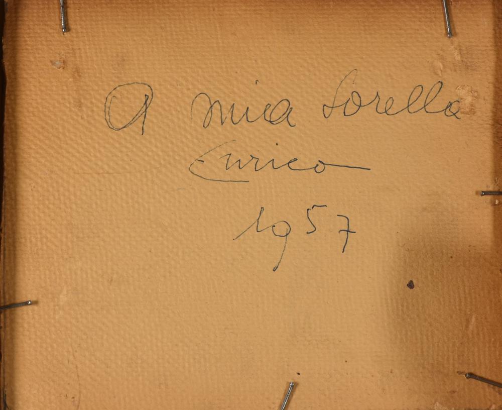 Enrico Allimandi PAESE DI MONTAGNA olio su cartone, cm 15x18 firma sul retro:...