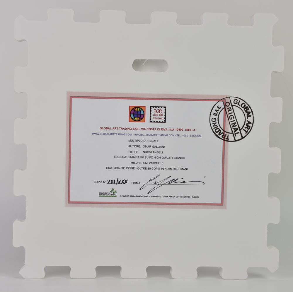 Omar Galliani NUOVI ANGELIstampa UV su FX high quality bianco, cm 21x21x1,3;...