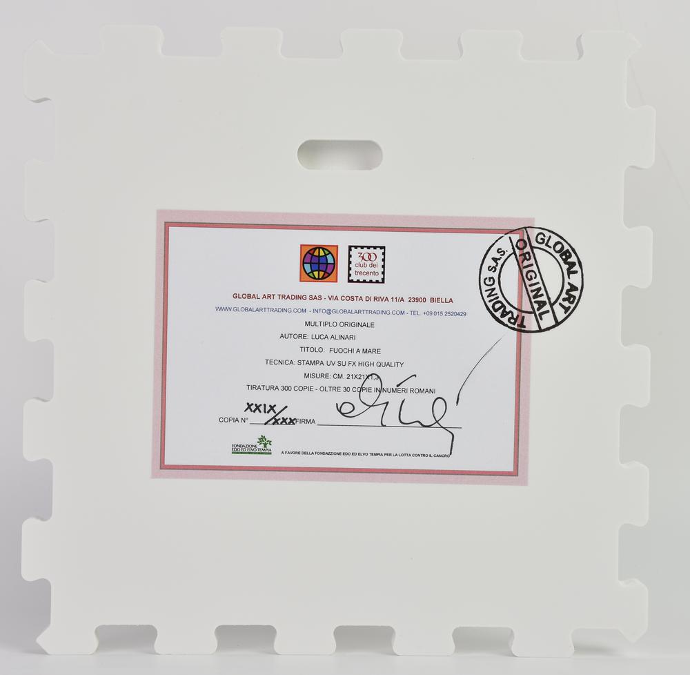 Luca Alinari FUOCHI A MAREstampa UV su FX high quality bianco, cm 21x21x1,3;...