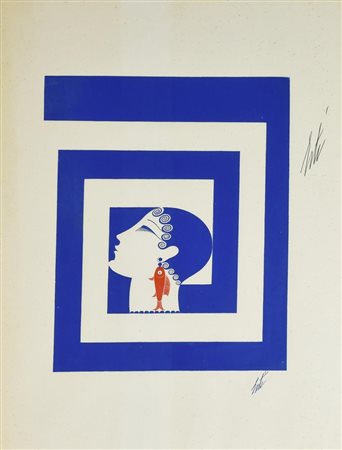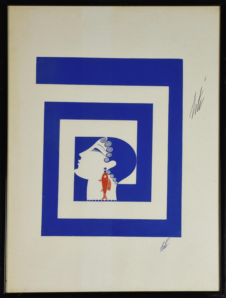 Erte' BLEU ET ROUGE, 1967 serigrafia, cm 50x35; es. F.C. firma; firma in...
