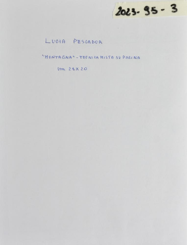 Lucia Pescador MONTAGNA, 1953 tecnica mista su carta, cm 29x20 firma,titolo e...