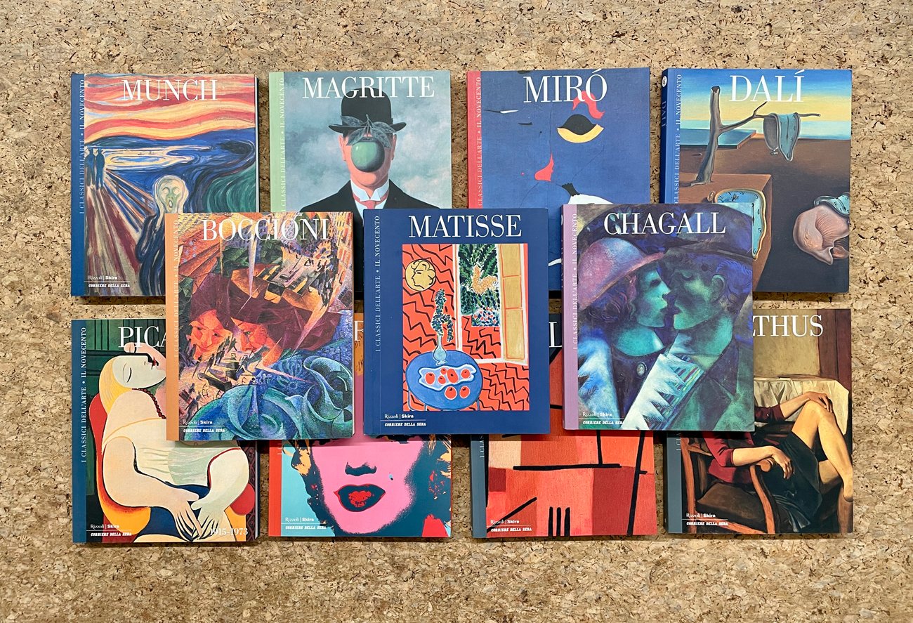 Lotto unico di 11 cataloghi a cura del Corriere della Sera, editi per la collana 'I Classici dell'Arte - Il Novecento', 2004, relativi ai seguenti artisti: Warhol, Picasso, Boccioni, Balthus, Munch, Klee, Chagall, Matisse, Dalì, Mirò, Magritte