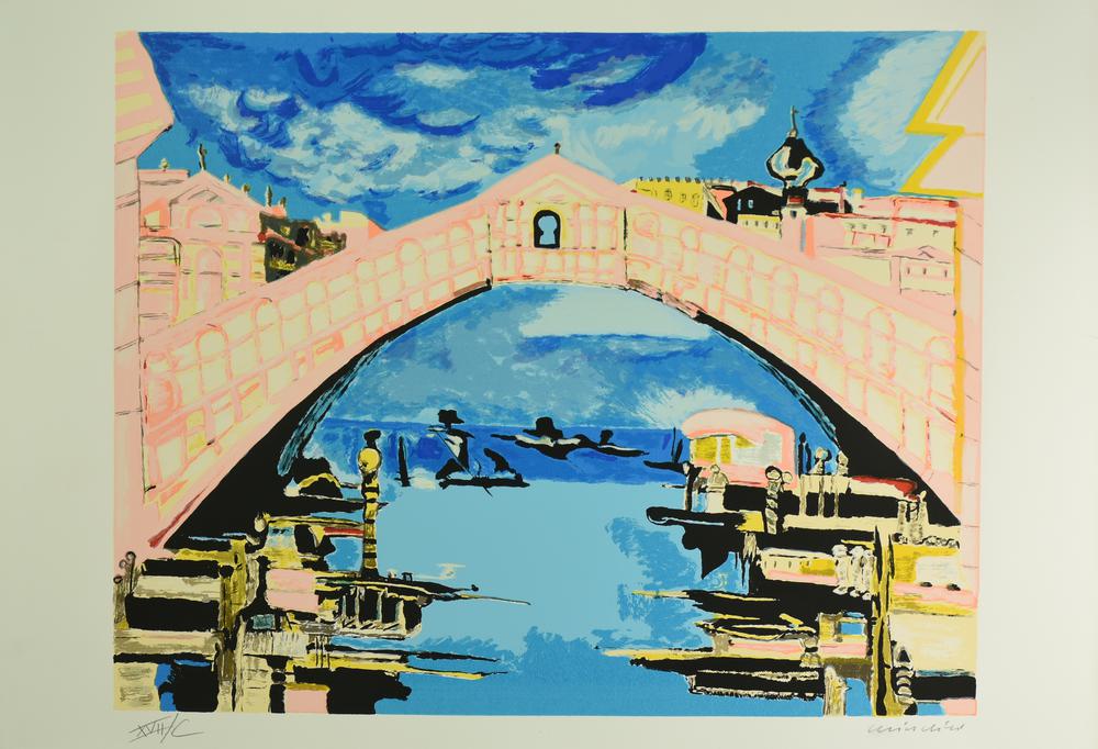 Remo Brindisi VENEZIA, PONTE DI RIALTO serigrafia su carta, cm 50x70; es....