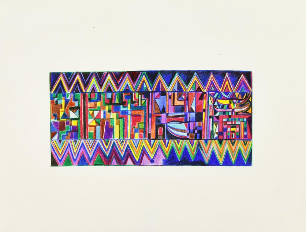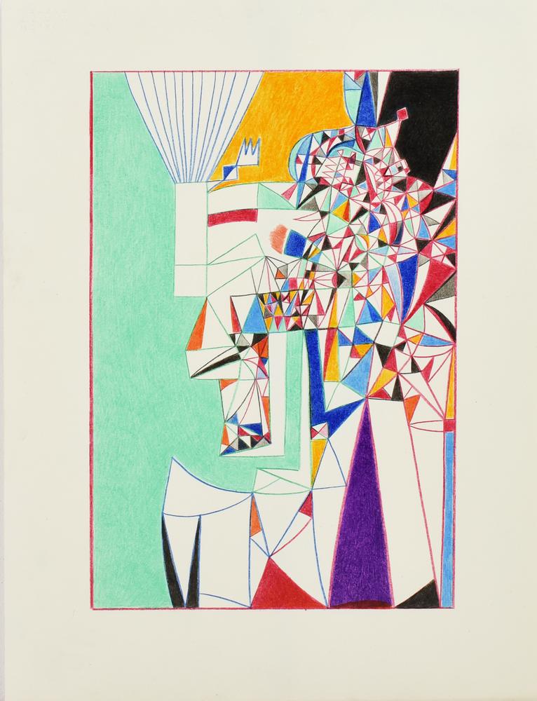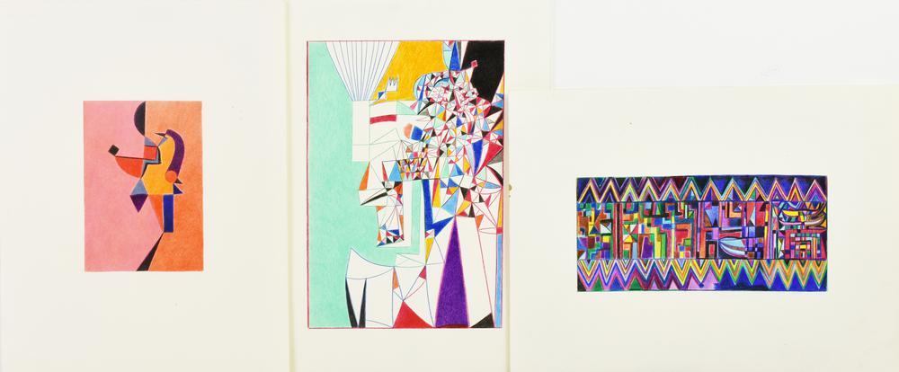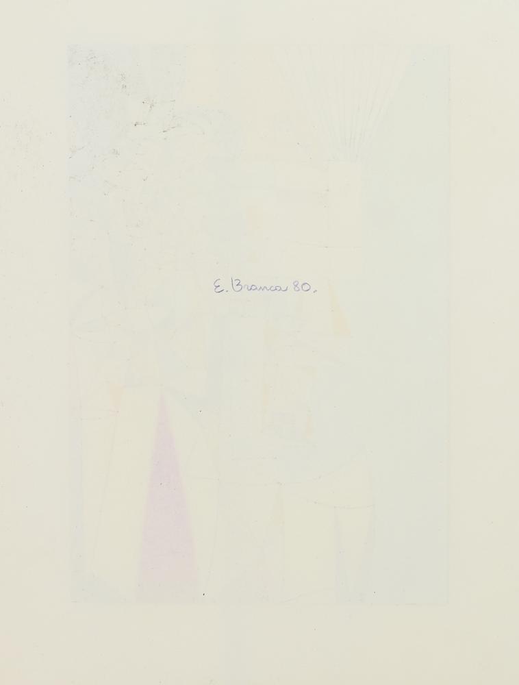 Enzo Branca COMPOSIZIONI, 1980 -matite colorate su carta, cm 25x33 sul retro:...