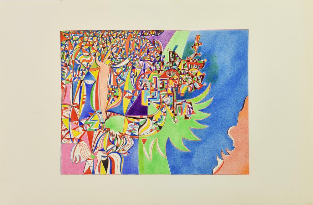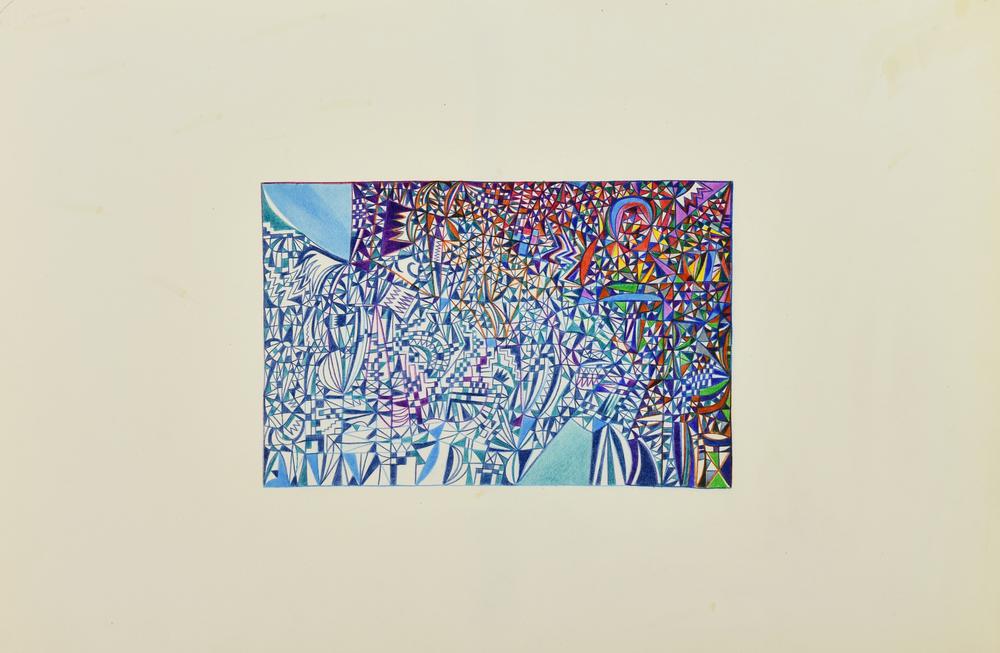 Enzo Branca COMPOSIZIONI, 1980 -matite colorate su carta, cm 33x48 sul retro:...