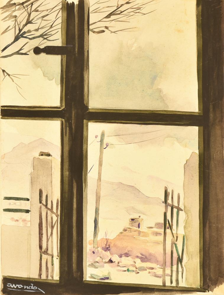 A firma Avondo DALLA FINESTRA acquarello su carta applica a faesite, cm 29x21...