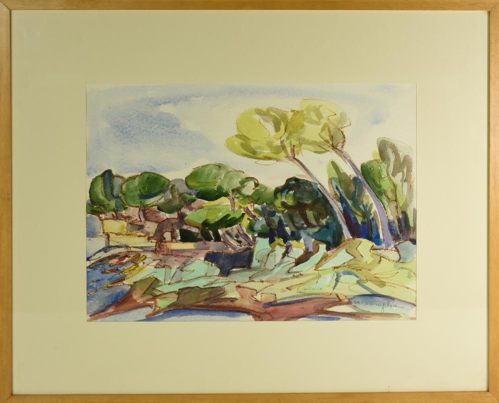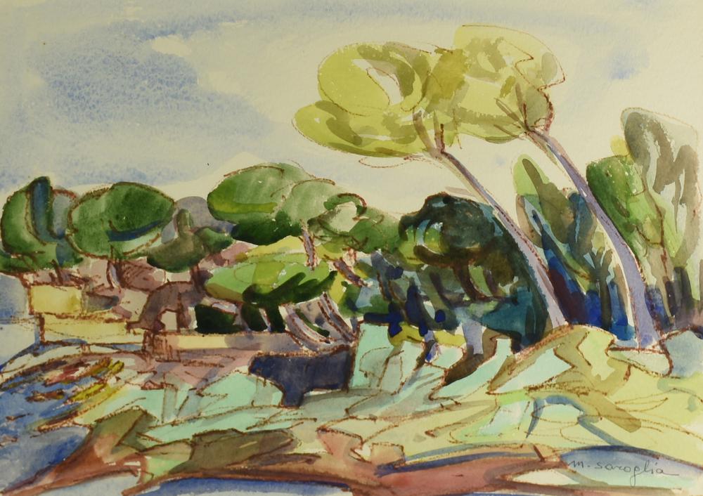 Mara Saroglia Andruetto PINETA SUL MARE acquarello su carta , cm 29x38 firma...