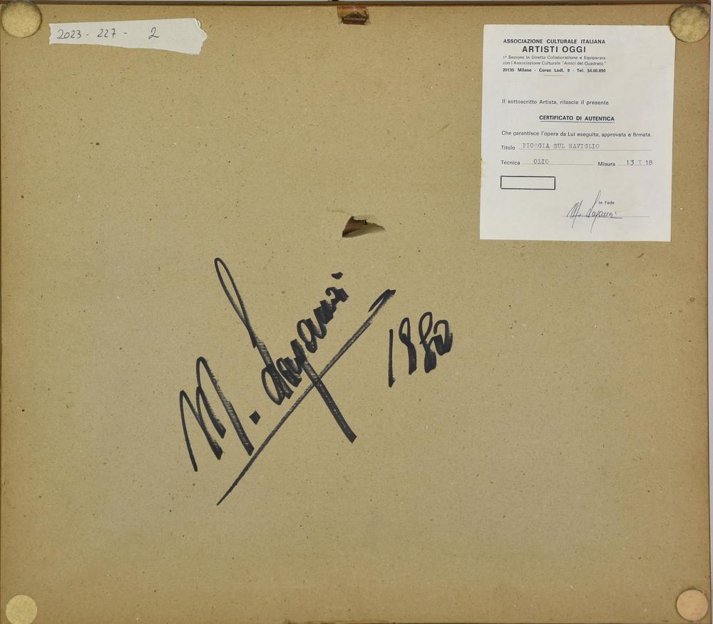 Matteo Lagana' PIOGGIA SUL NAVIGLIO, 1982 olio su cartone telato, cm 13x18...