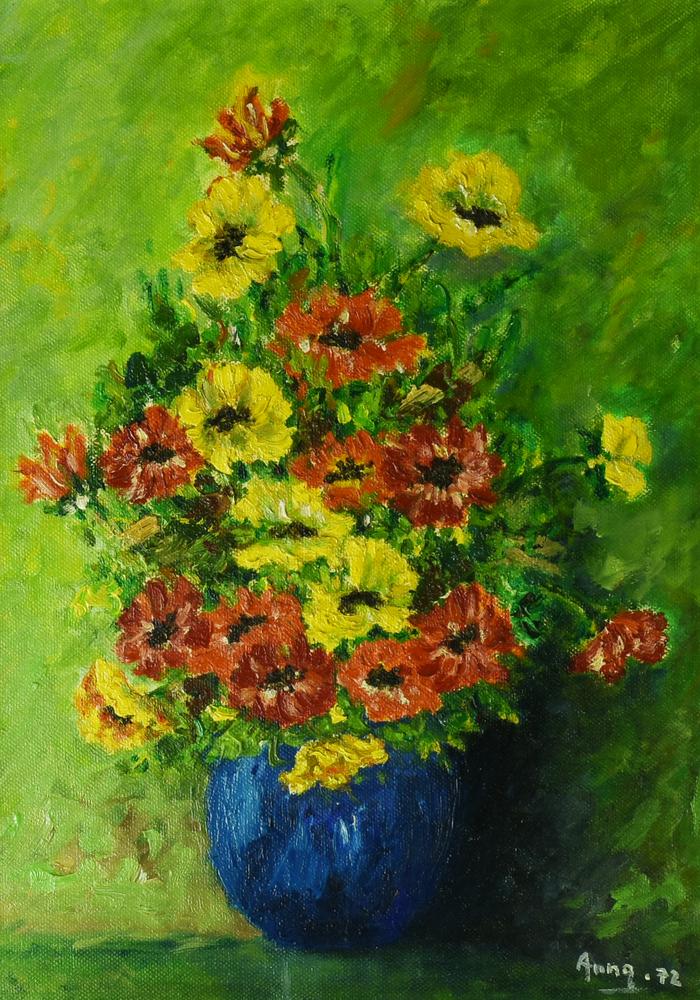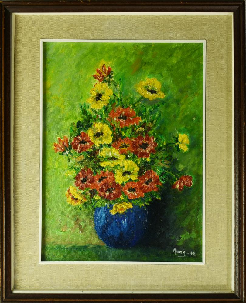 Lot 105 | Ignoto VASO DI FIORI, 1972 olio su tela, cm 35x25 firma e data
