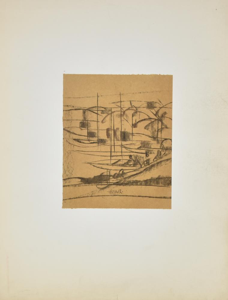 GIANBAR (Gianni Baretta) BARCHE A MALAGA carboncino su carta applicata su...