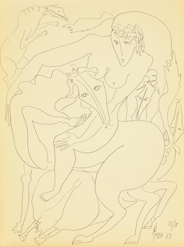 Russo LA CAVALCATA pennarello su carta, cm 40x30 firma e data eseguito nel 1973