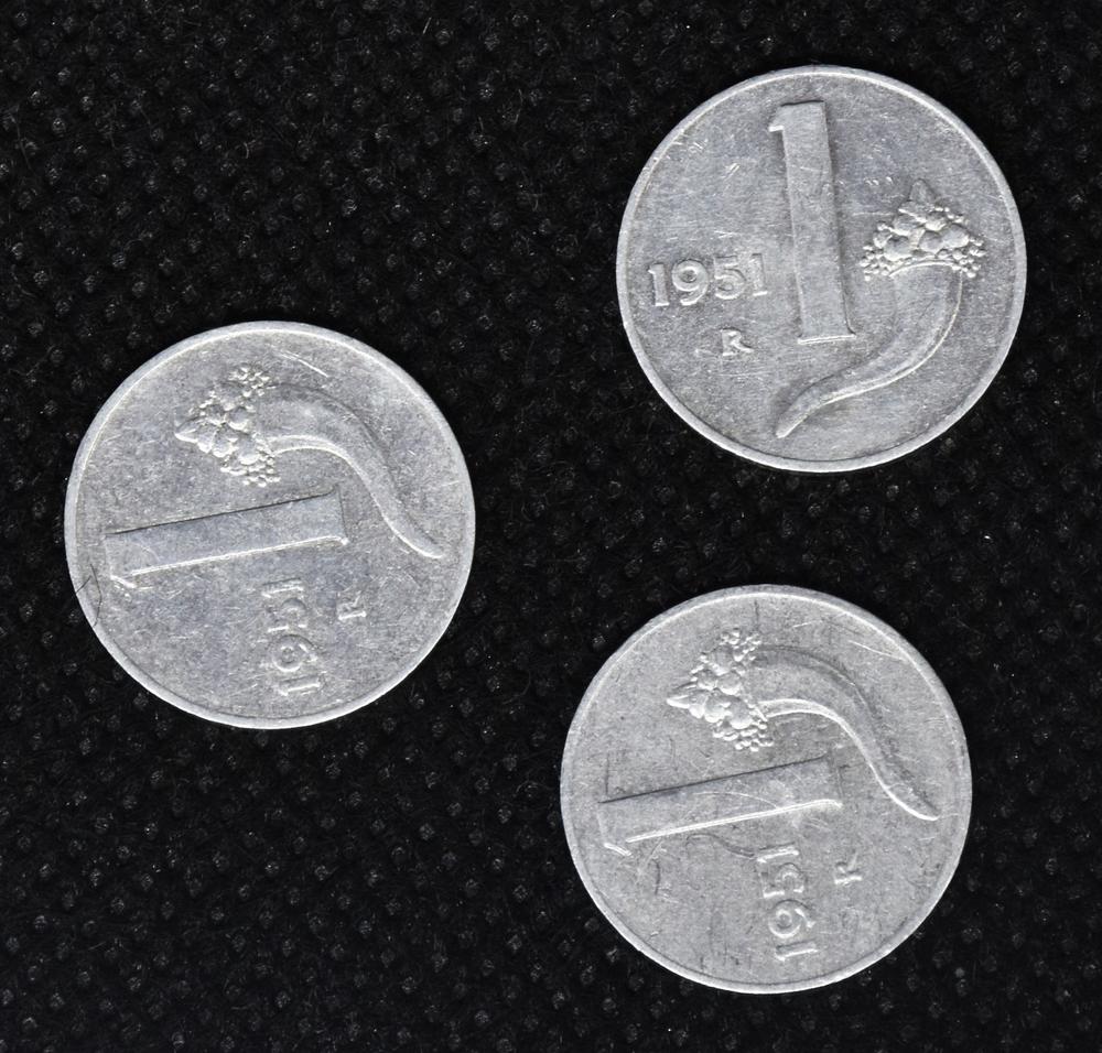 LOTTO DI 3 MONETE REPUBBLICA ITALIANA da 1 lira 1951