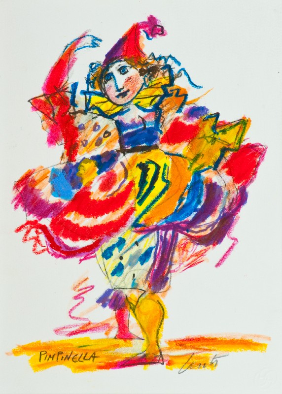 Emanuele Luzzati (Genova 1921 - 2007) PIMPINELLA Pastelli policromi su carta, cm. 35x25 Firma in basso a destra, titolo in basso a sinistra.