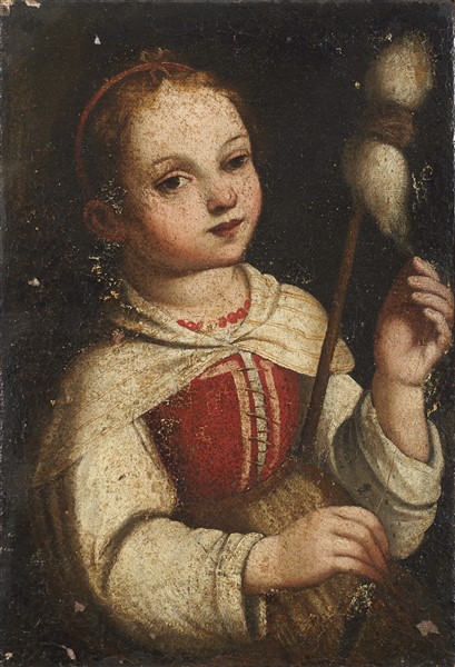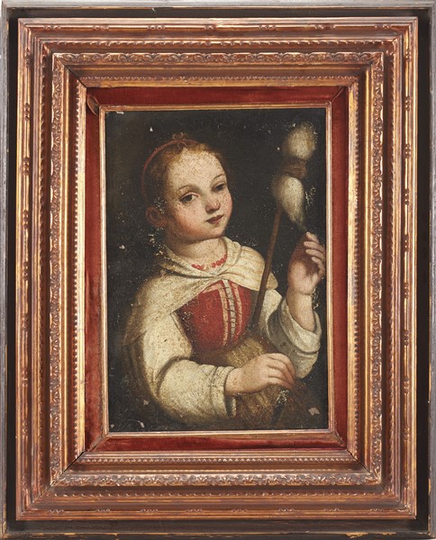 Ignoto lombardo del secolo XVII "Filatrice" olio su tela (cm 35x24) in cornice