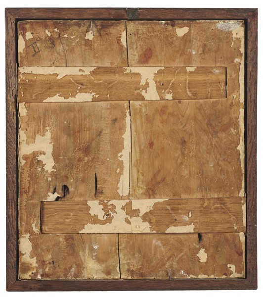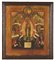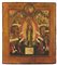 Icona ad olio su tavola con la sua riza in argento vermeil, cesellata e sbalzata con placche in smalti a fondo blu iscritti in oro smontata e applicata su pannello. Punzoni di Mosca, 1831. Argentiere non identificato (cm max 39x34) (difetti e restauri)