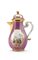 Manifattura di Meissen, circa 1730-1735, nei modi di Johann Gregorius Horoldt. Piccola caffettiera con coperchio in porcellana fondo malva con corpo sfaccettato, beccuccio triangolare in oro così come i profili, il corpo centrato entrambe i lati da cartelle polilobate bordate in oro centrate da scene portuali. Marca di fabbrica e numerale del doratore (h. cm 17) (difetti)