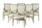 Gruppo di sei poltrone in legno laccato color avorio con filettature verdi, seduta e schienale imbottiti rivestiti in seta, sotto braccioli e gambe anteriori torniti terminanti con piedi a sfera. Francia, fine secolo XVIII (restauri)