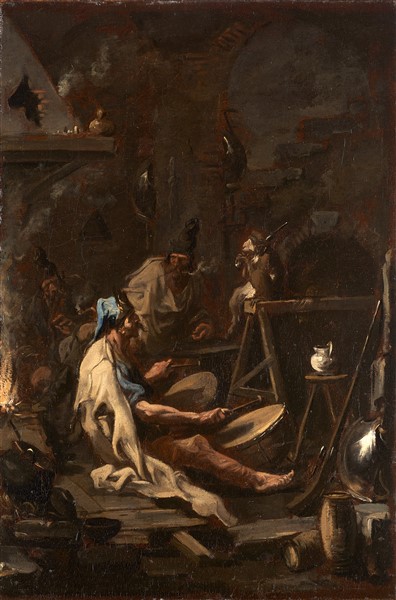Alessandro Magnasco "Il suonatore di timpano che addestra una scimmia" olio su t