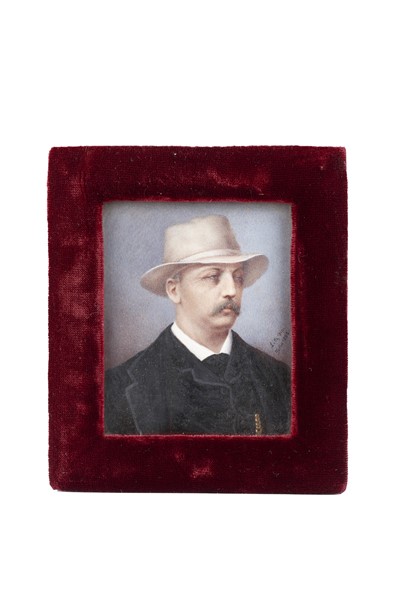 Luigi Litta (Ferrara,1813 - Intra,1891) "Portrait of a gentleman with hat" rectangular miniature on ivory (cm 10,5x9) signed, dated and rented Intra 1882