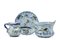 Manifattura di Pavia, secolo XVIII. Lotto composto da una crespina, un secchiello e una brocca in maiolica dipinta in policromia con motivi floreali e zoomorfi su fondo berettino (d. cm 19,5, h. cm 13 e 10) (difetti e restauri)