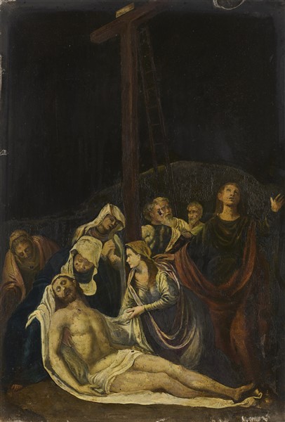 Scuola della fine del secolo XVII "Deposizione" olio su lavagna (cm 38x26) in