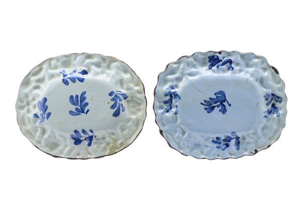 Manifattura di Pavia, inizio secolo XVIII. Due vassoietti ovali in maiolica con