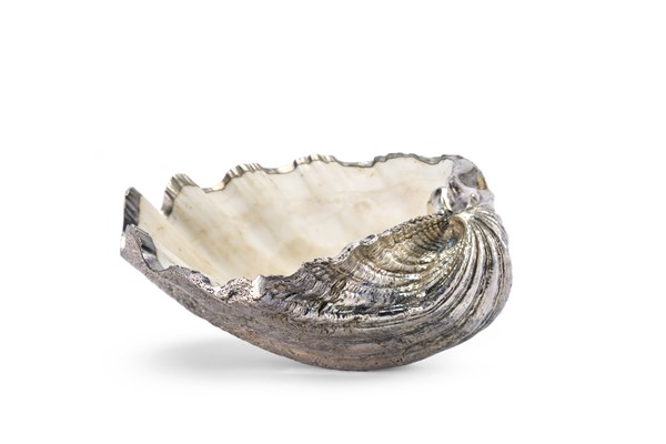 MARIO BUCCELLATI. Conchiglia rivestita in argento. Marcato "M. Buccellati". In scatola originale (cm 23x19,5)