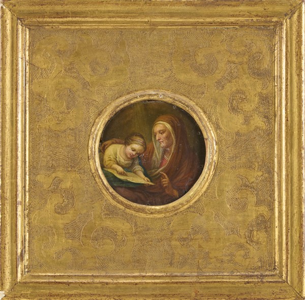 Scuola della fine del secolo XVIII "Educazione della Vergine" olio su cartone