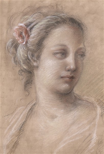 Ignoto "Ritratto di fanciulla con fiore" carboncino, gesso bianco e tracce di