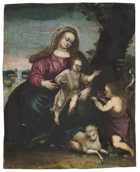 Lot 979 | Scuola del nord Europa del secolo XVII "Madonna con Bambino e San Giovannino"