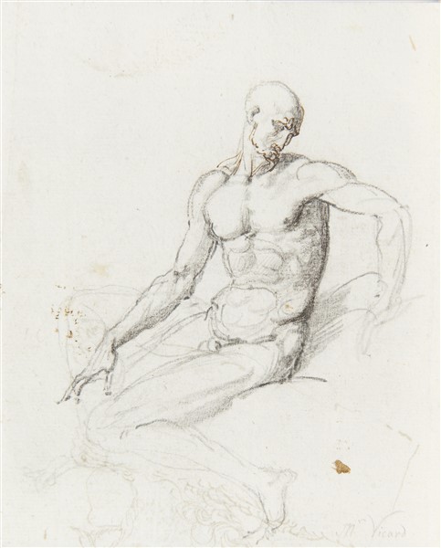 Artista della fine del secolo XVIII "Figura virile seduta" carboncino e penna