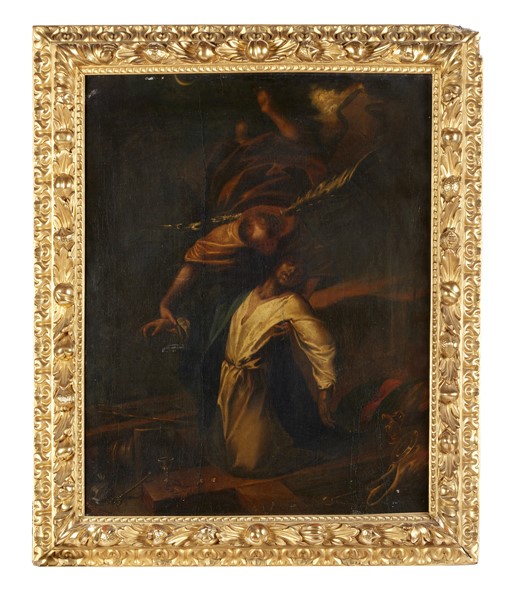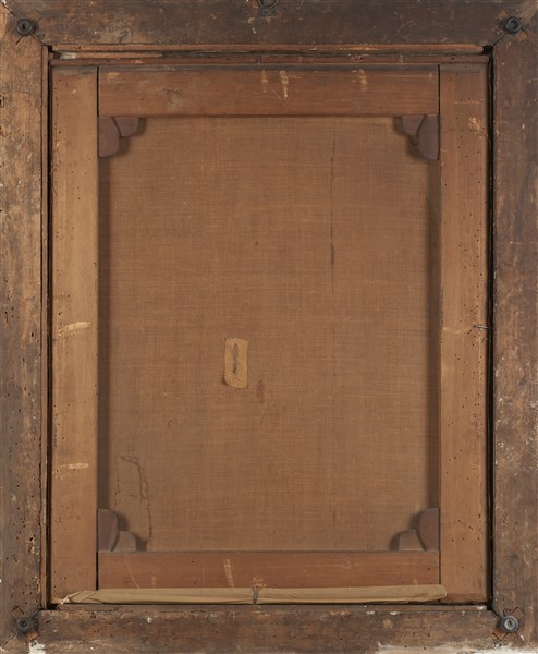 in antique carved and gilded wooden frame (defects, restorations and losses)
