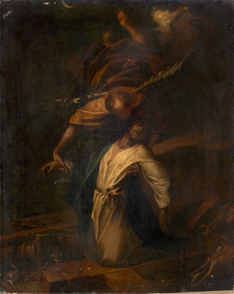 Scuola lombarda del secolo XVIII "Cristo sorretto da un angelo" olio su tela (