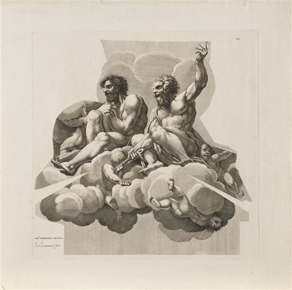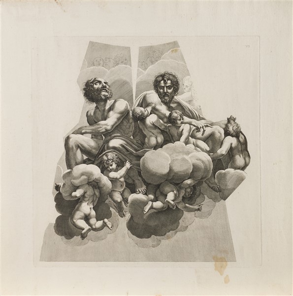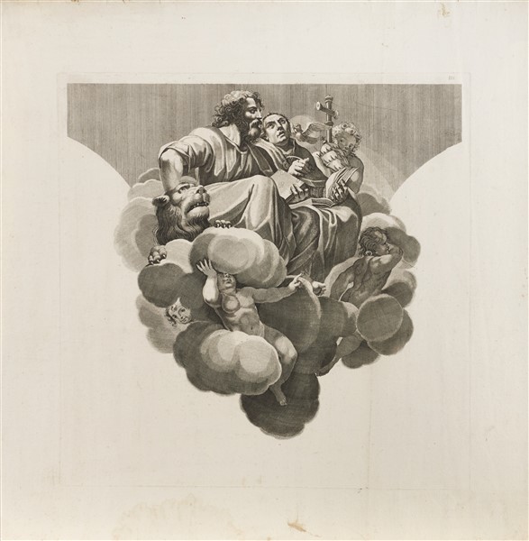Lot consisting of eleven etchings engraved by Maria Giacomo Giovannini from inventions by Correggio for the Dome of San Giovanni Evangelista in Parma, some of which are signed on the plate