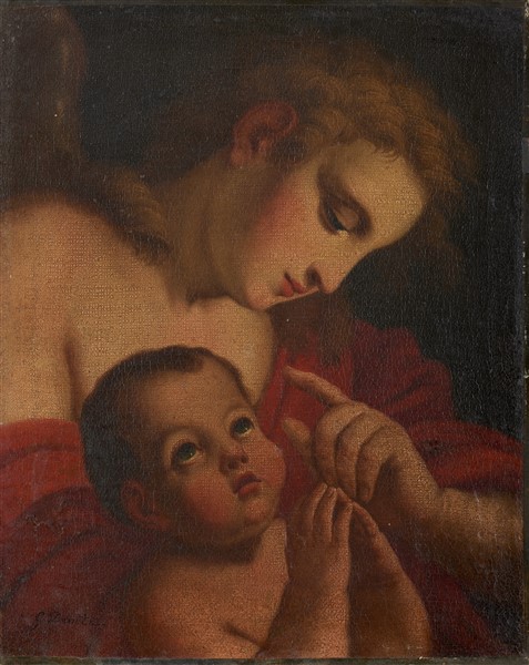 Scuola lombarda del secolo XIX "Madonna con bimbo in preghiera" olio su tela (