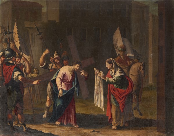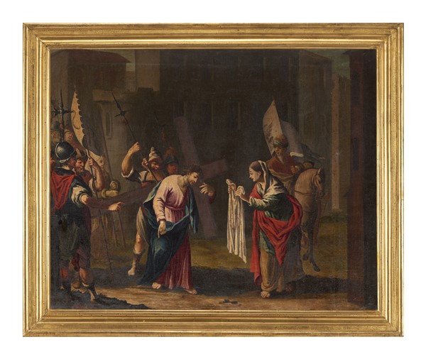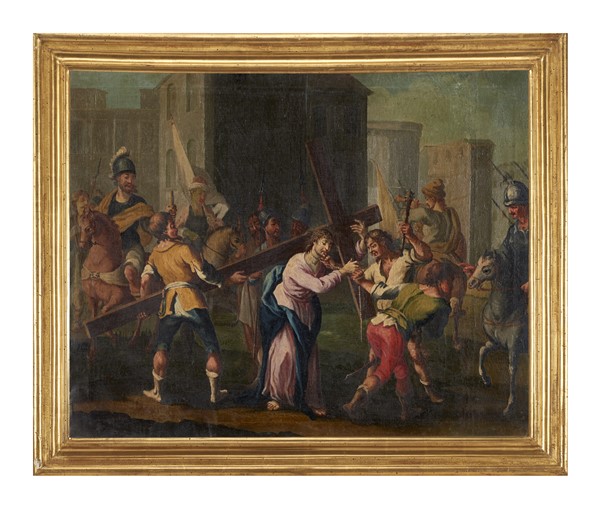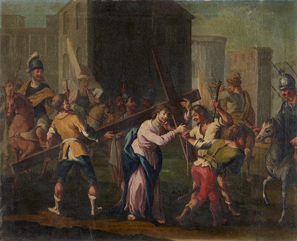 Sebastiano Taricco (attr.) "Gesù è aiutato a portare la croce da Simone di Cire