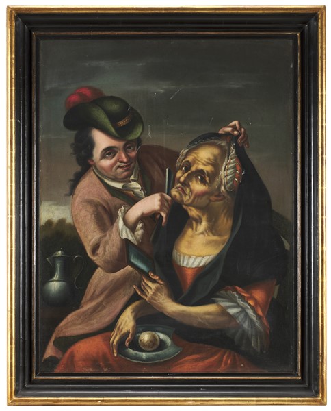 Scuola lombardo-veneta del secolo XVIII "Vanità" olio su tela (cm 78x59) in co
