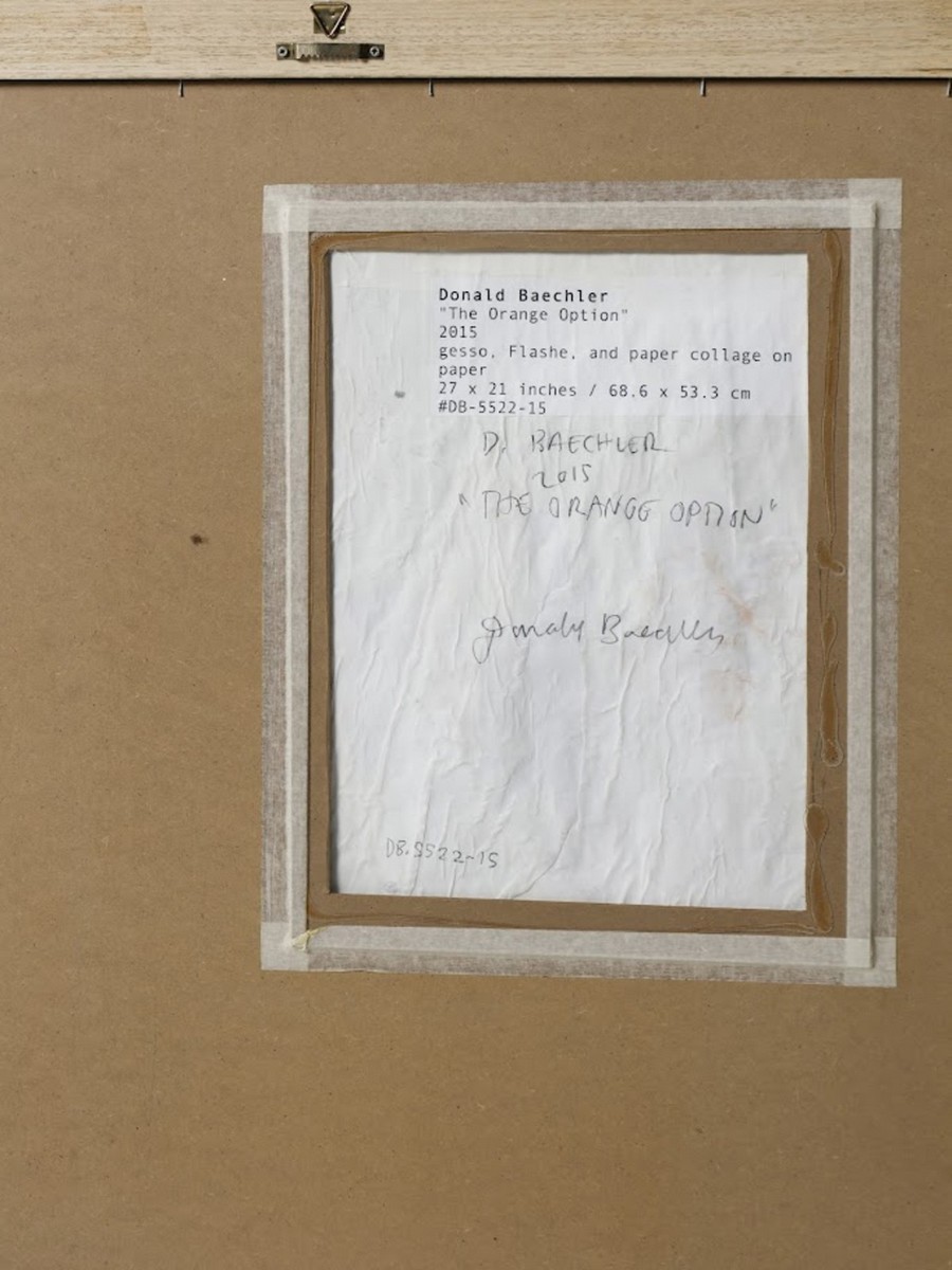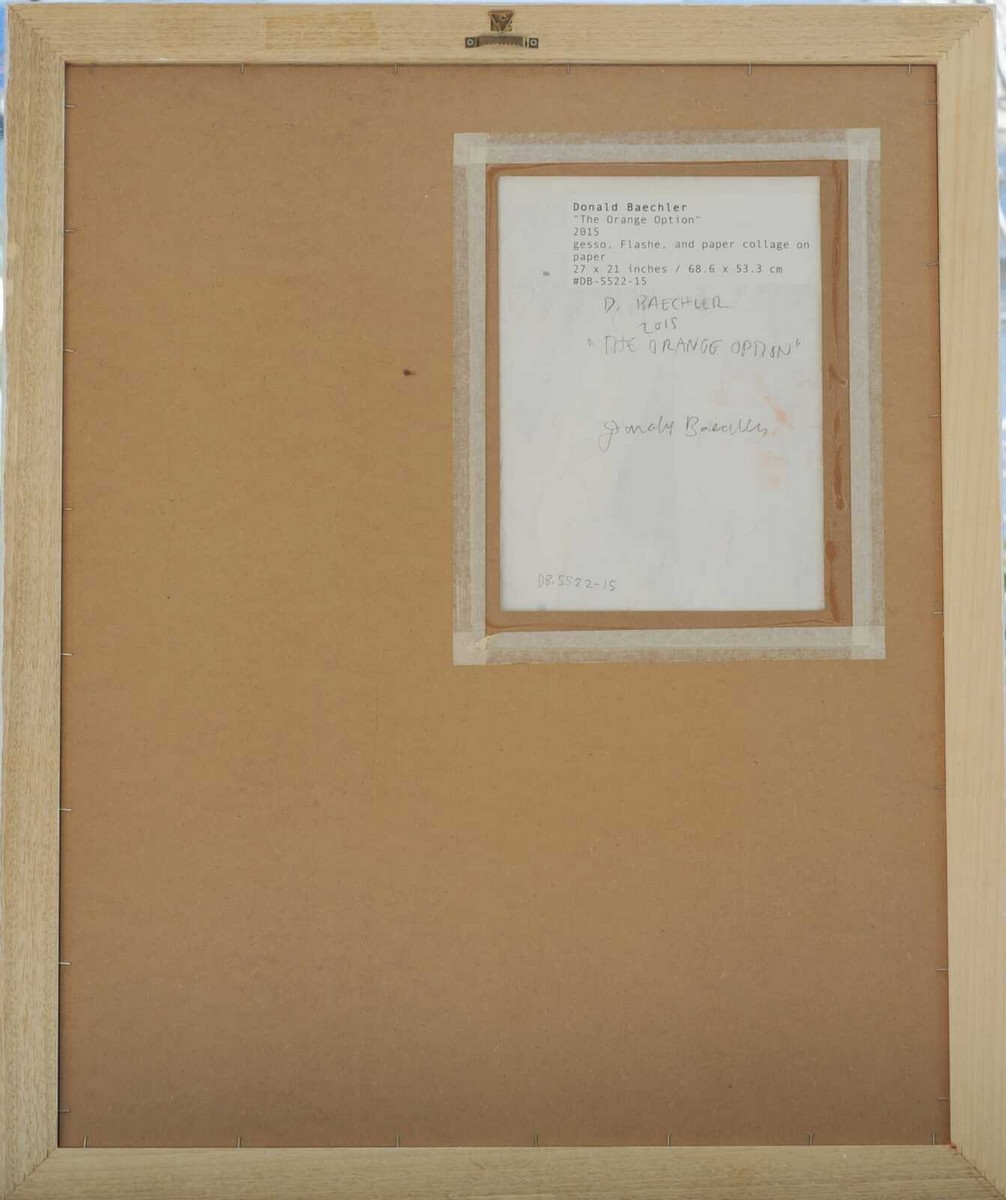 BAECHLER DONALD (1956 - 2022) THE ORANGE OPTION. 2015. gesso, flashe e collage su carta. Cm 53,30 x 68,60. sul retro: etichetta con firma dell'artista