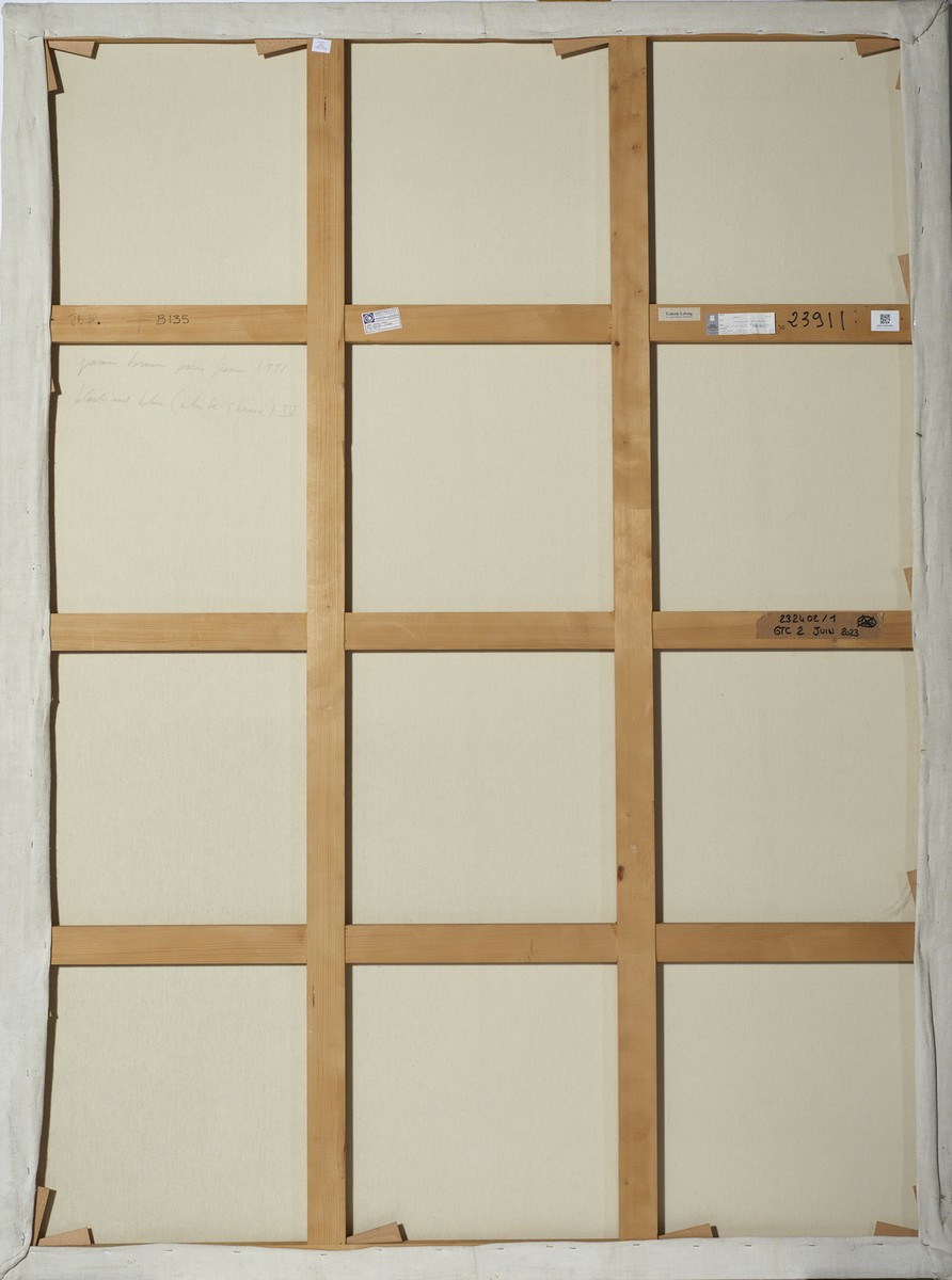 BROWN JAMES (n. 1951) BLACK AND BLUE WHITE SHRINE IV . 1991. olio e tessuto su tela. Cm 180,00 x 240,00. sul retro: firma, data e titolo; etichette Galerie Lelong, Parigi e Galerie Isy Brachot, Bruxelles