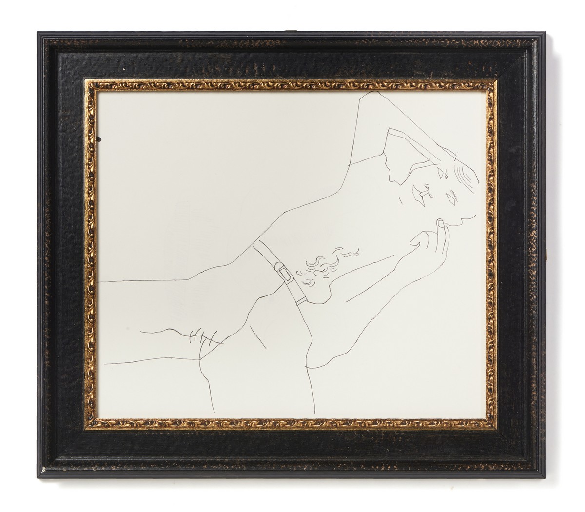 WARHOL ANDY (1928 - 1987) RECLINING MALE. 1950. Inchiostro su carta. Cm 34,90 x 41,90. opera fronte e retro