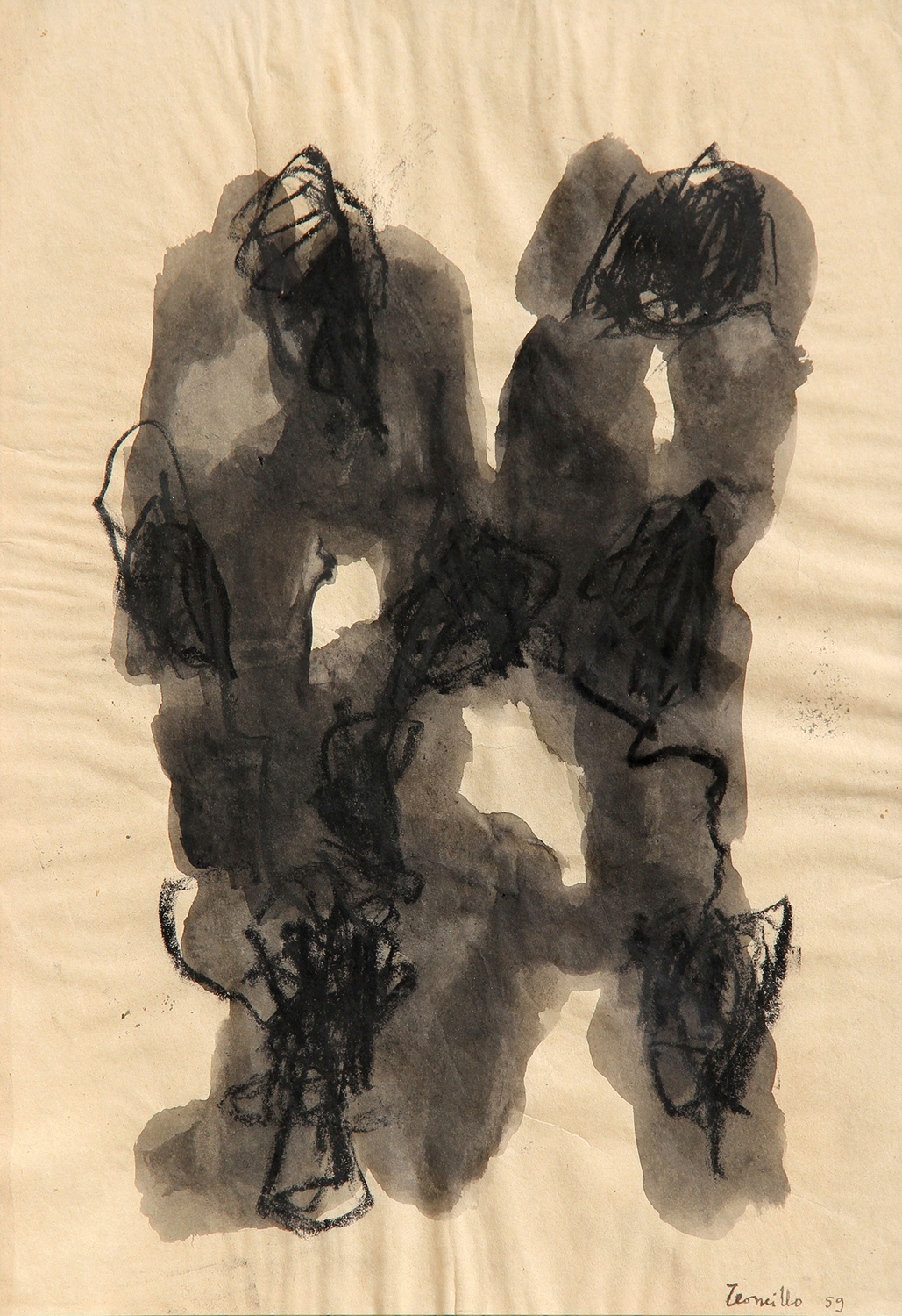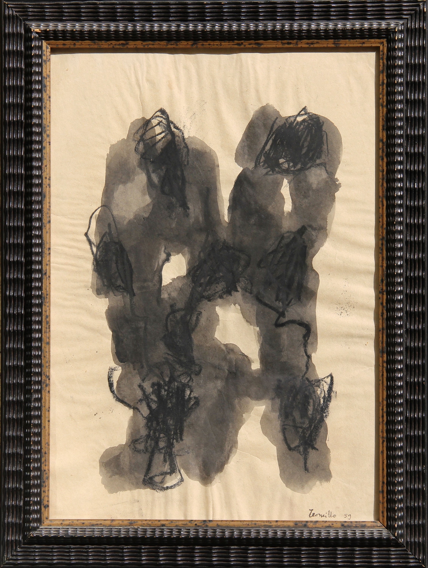 LEONARDI Leoncillo, Senza titolo, 1959, carbone e gouache su carta, cm 52x36,