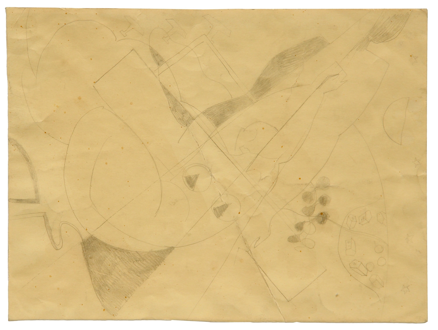 L'opera presenta al retro lo studio per l'opera "Compenetrazione - donna aereo"