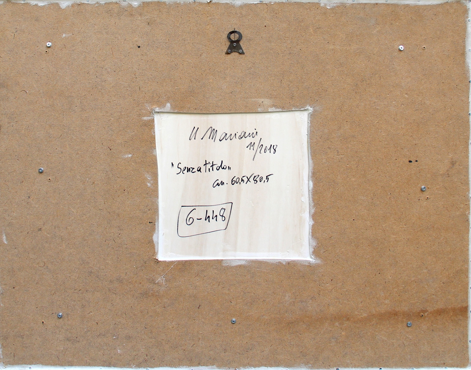 Firma, data, titolo, misura, numerazione "U. Mariani, 11/2018, Senza titolo, cm. 60,5x80,5, 6-448" (al retro)