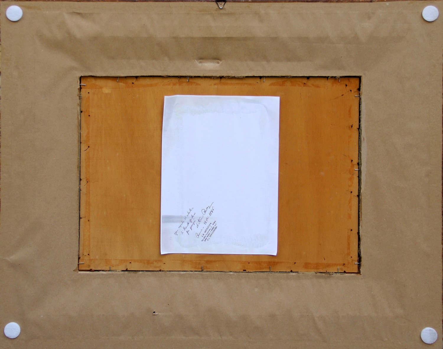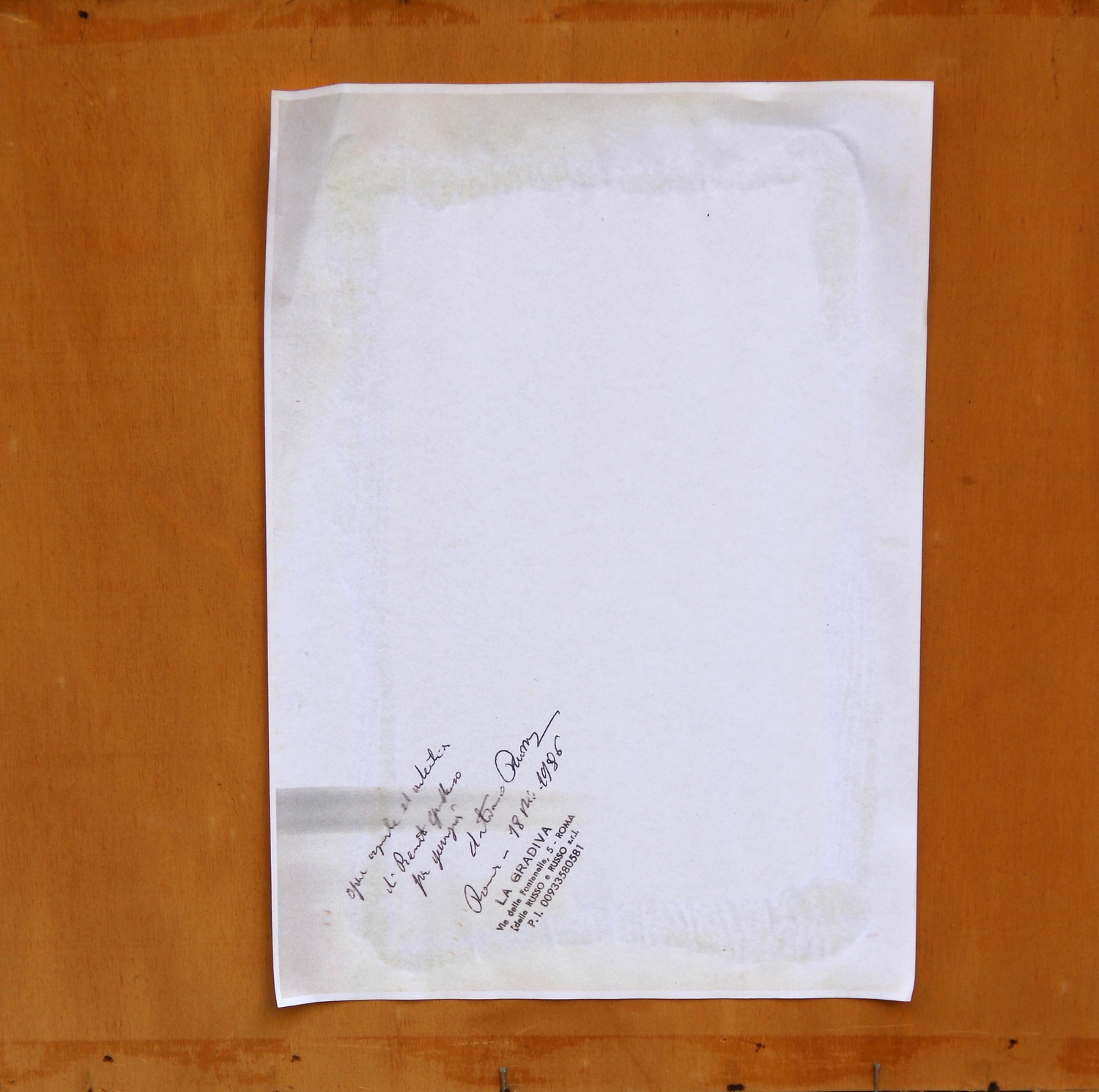 Timbro di Galleria La Gradiva, con firma di Antonio Russo (al retro)