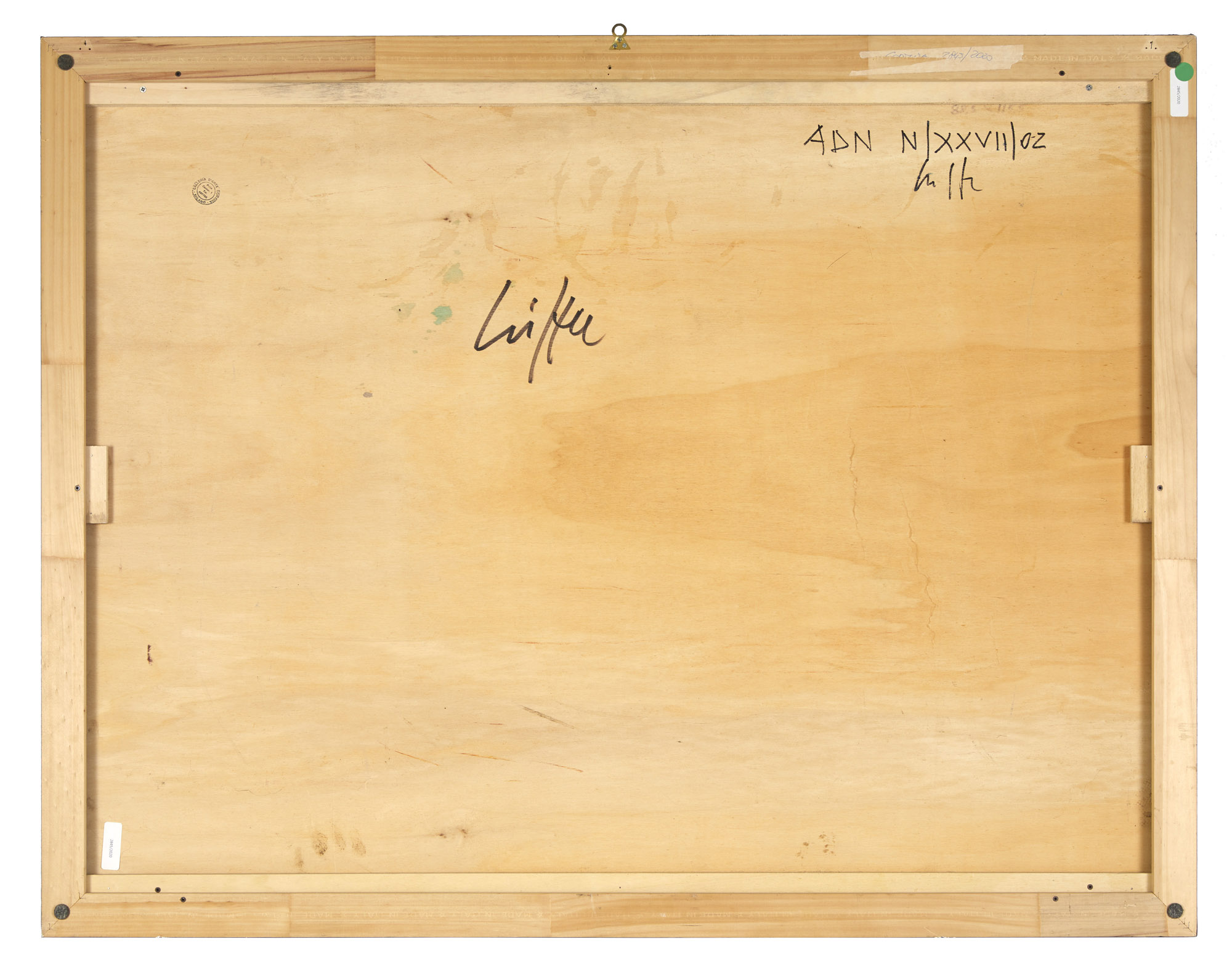 Timbro della Galleria d'Arte Cortina, Milano sul retro