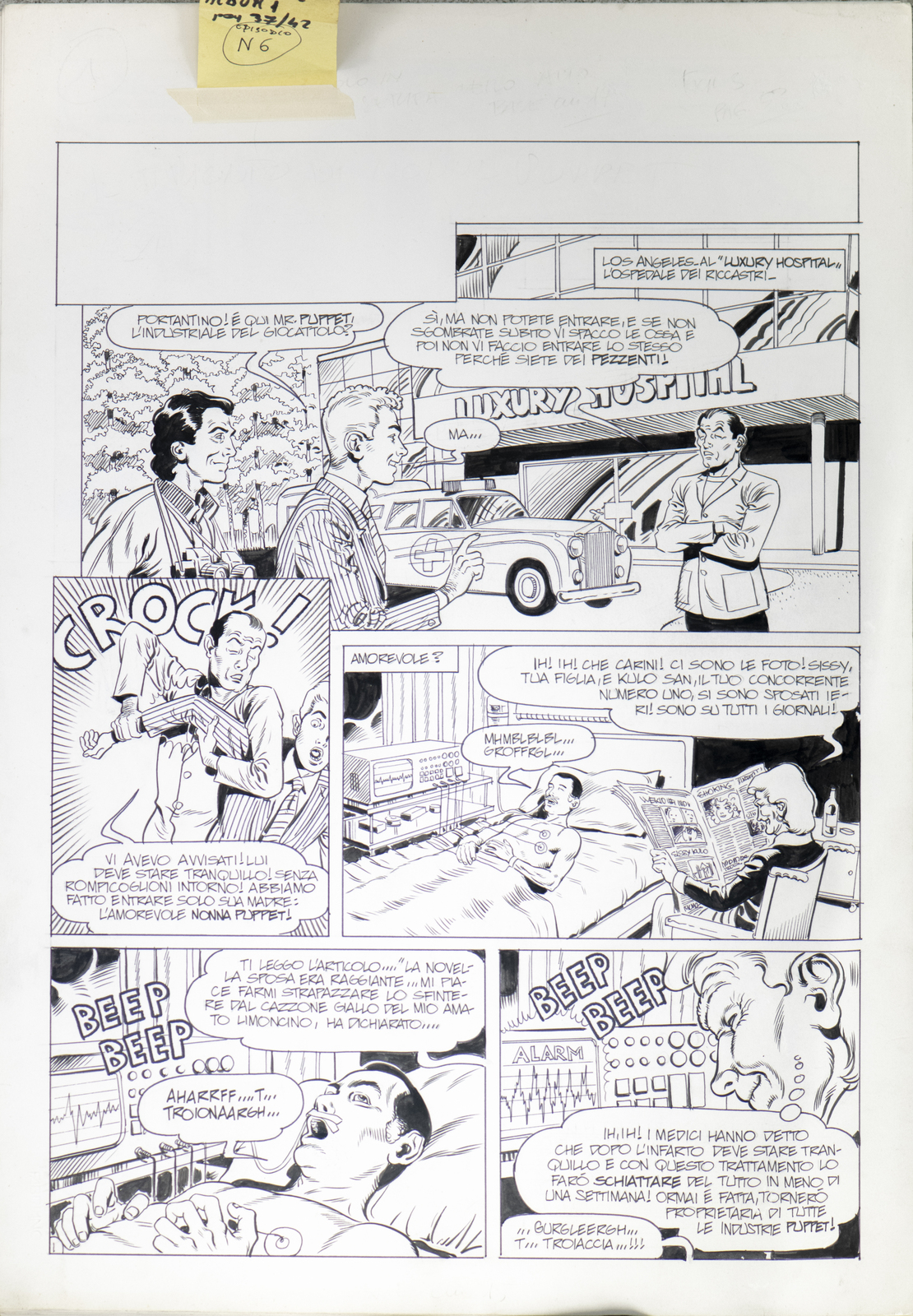 Gramaccioni Oliviero Episodio n 6 della saga a fumetti "Chiappitol". . 1990. China su carta. Cm 34,00 x 48,00. Episodio completo n 6 della parodia a fumetti della celebre soap opera televisiva Capitol. Culto degli anni '80. La serie uscì in edicola nel 1990 in eleganti volumi brossurati.