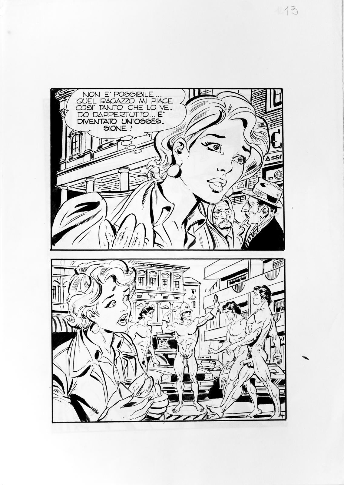 Benni Eugenio Antonio "Il marchettaro". China su carta. Cm 21,00 x 30,00. EUGENIO ANTONIO BENNI (CAPITAN MIKI, L’UOMO MASCHERATO, IL GRANDE BLEK)
